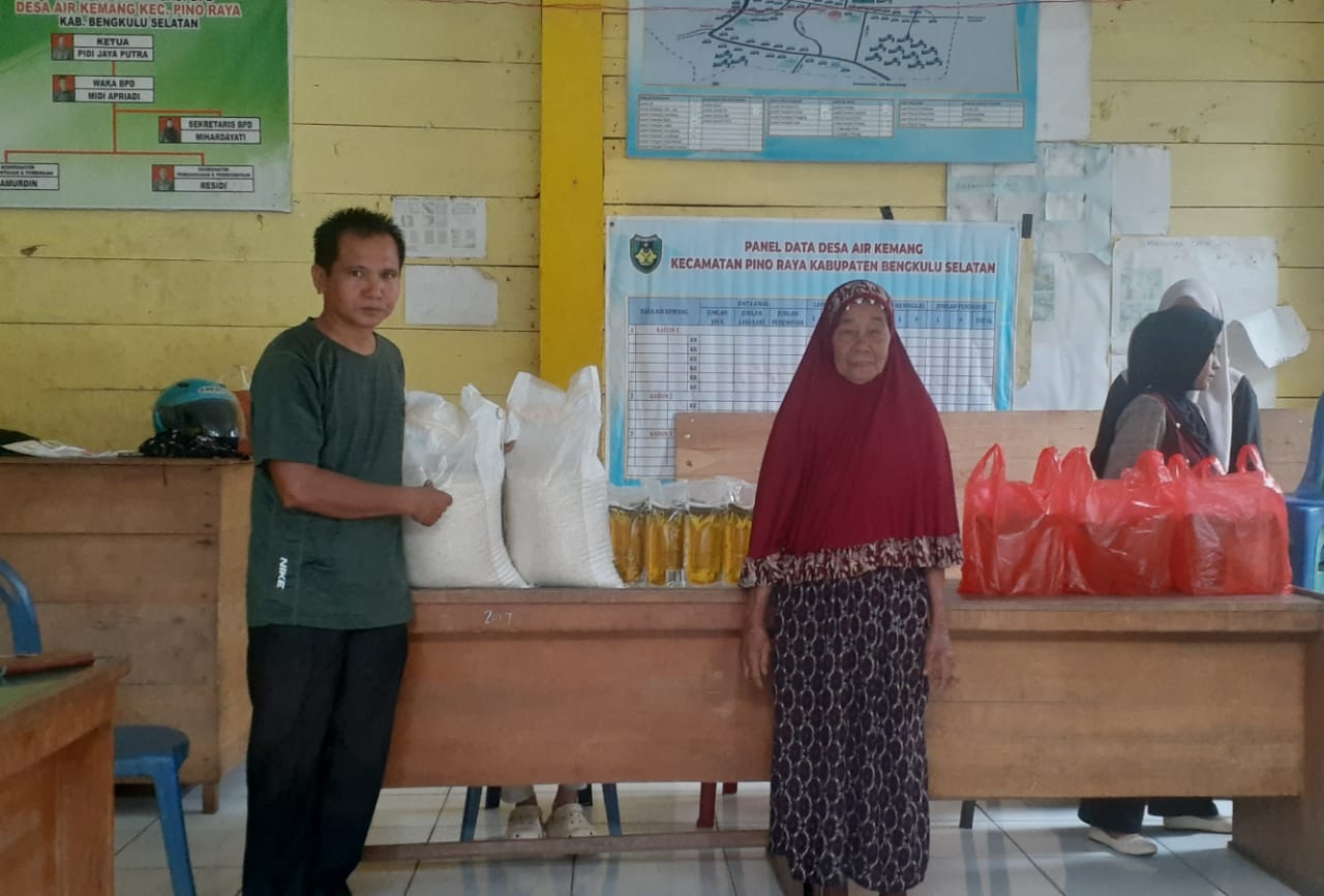 TNews, BENGKULU SELATAN – Pemerintah Desa Air Kemang Kecamatan Pino Raya Kabupaten Bengkulu Selatan menyalurkan Bantuan Pangan (Bapang) dari Pemerintah berupa beras dan minyak goreng kepada warga yang terdata sebagai penerima manfaat.