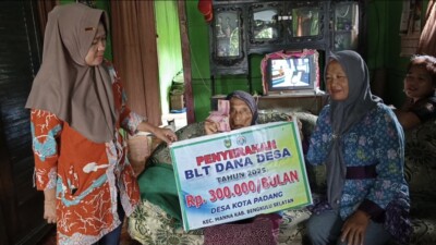 TNews, BENGKULU SELATAN – Pemerintah Desa Kota Padang, Kecamatan Manna, Kabupaten Bengkulu Selatan kembali menyalurkan Bantuan Langsung Tunai Dana Desa (BLT-DD) kepada 23 orang penerima manfaat untuk bulan November dan Desember 2025. Pada Kamis (27/11/2025) Masing-masing penerima mendapatkan bantuan sebesar Rp 300.000 per bulan, dengan total Rp 600.000 per orang untuk dua bulan sekaligus.