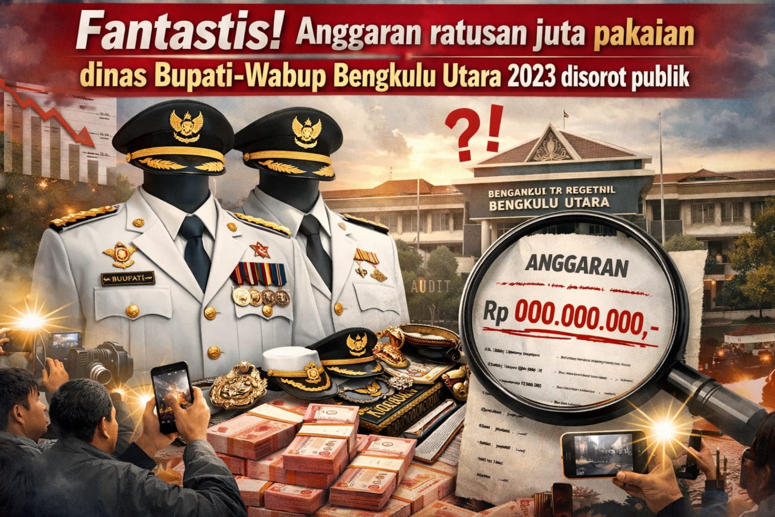 TNews, Bengkulu Utara – Anggaran ratusan juta rupiah untuk pengadaan pakaian dinas dan atribut kelengkapan untuk Kepala Daerah (Bupati) dan Wakil Kepala Daerah (Wabup) Kabupaten Bengkulu Utara tahun 2023 kini menjadi perhatian tajam publik. Bukan sekadar karena nilainya yang besar, tetapi karena realisasinya yang nyaris habis tanpa sisa berarti.
