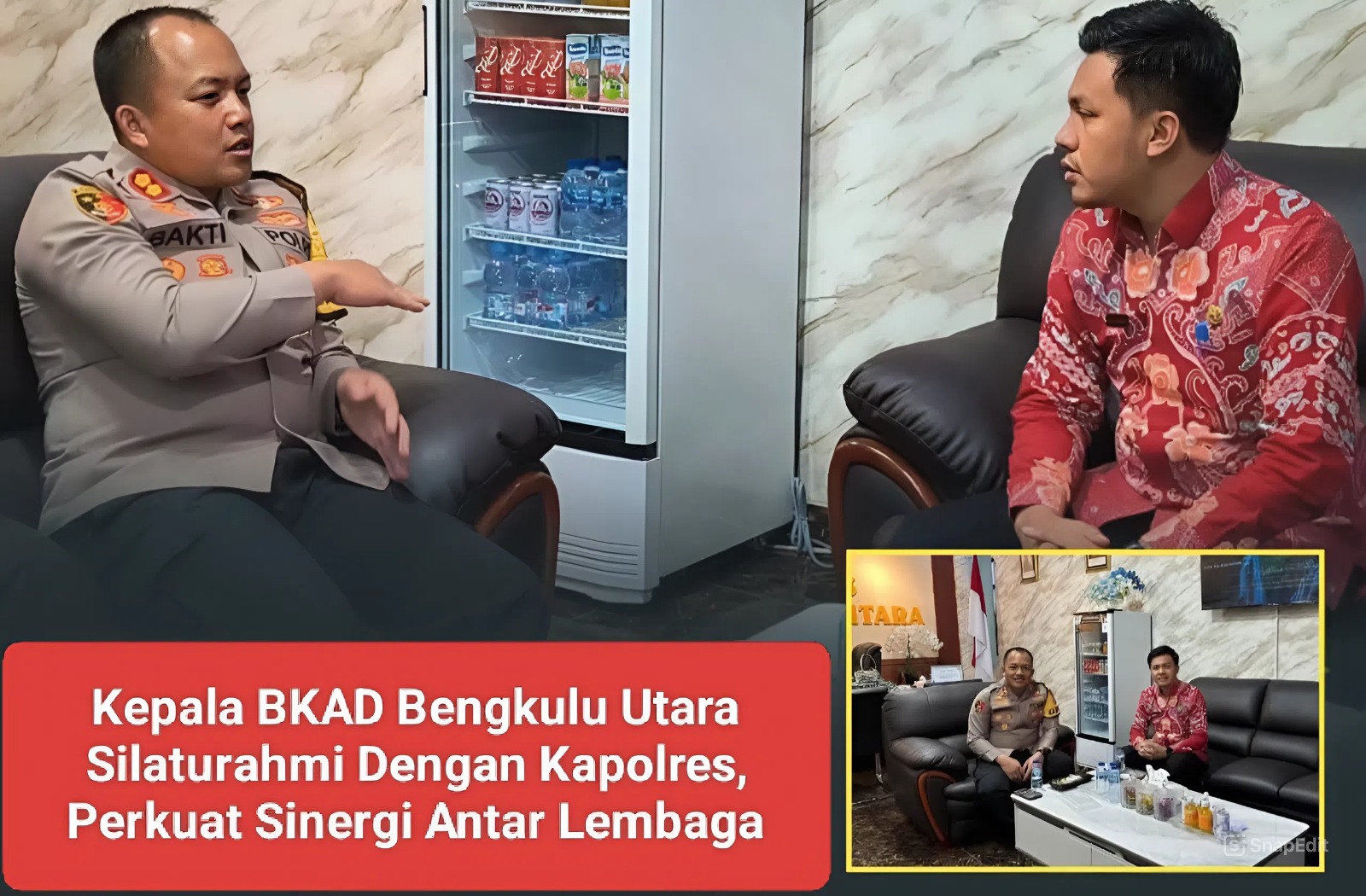 TNews, Bengkulu Utara – Kepala Badan Keuangan dan Aset Daerah (BKAD) Kabupaten Bengkulu Utara, Carles Jhonson, S.T., M.M., melaksanakan silaturahmi dengan Kapolres Bengkulu Utara, AKBP Bakti Kautsar Ali, S.Sos., S.I.K., M.H., di Mapolres Bengkulu Utara, Kamis (5/02/2026).