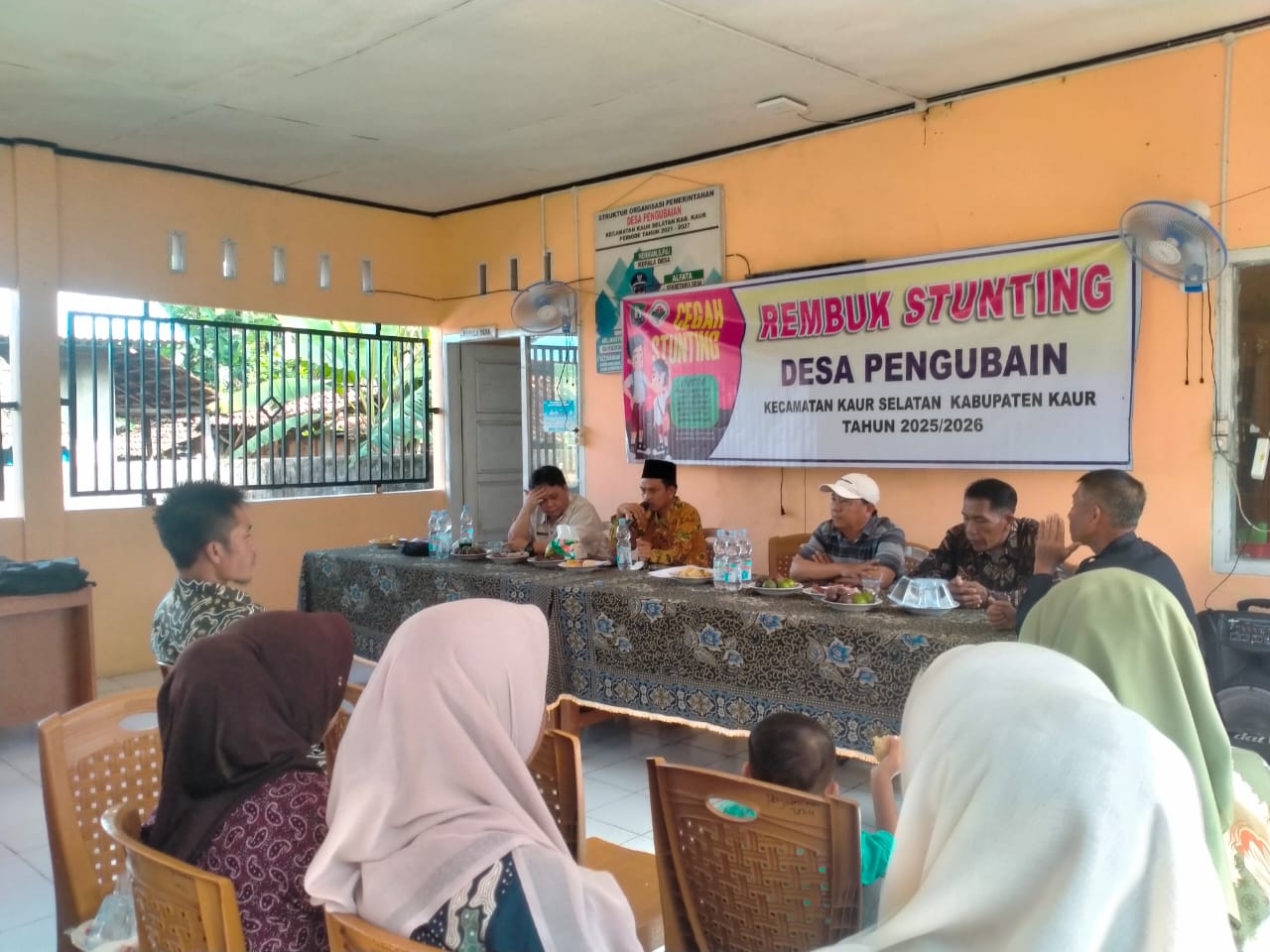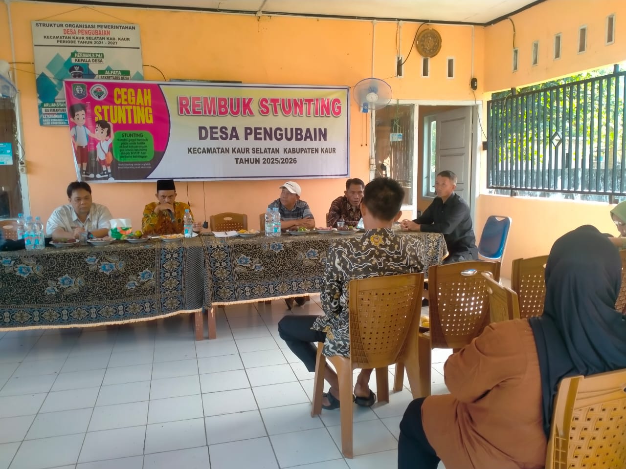 TNews.Kaur- Pemerintahan Desa Pengubaian Kecamatan Kaur Selatan Kabupaten Kaur melaksanakan kegiatan musyawarah tingkat desa untuk membahas, merumuskan, dan menetapkan komitmen serta rencana aksi pencegahan dan penanganan stunting tahun 2025. Kegiatan ini melibatkan pemerintah desa, masyarakat, petugas kesehatan, dan lintas sektor untuk menciptakan generasi sehat melalui strategi seperti peningkatan gizi, edukasi, dan perbaikan sanitasi.