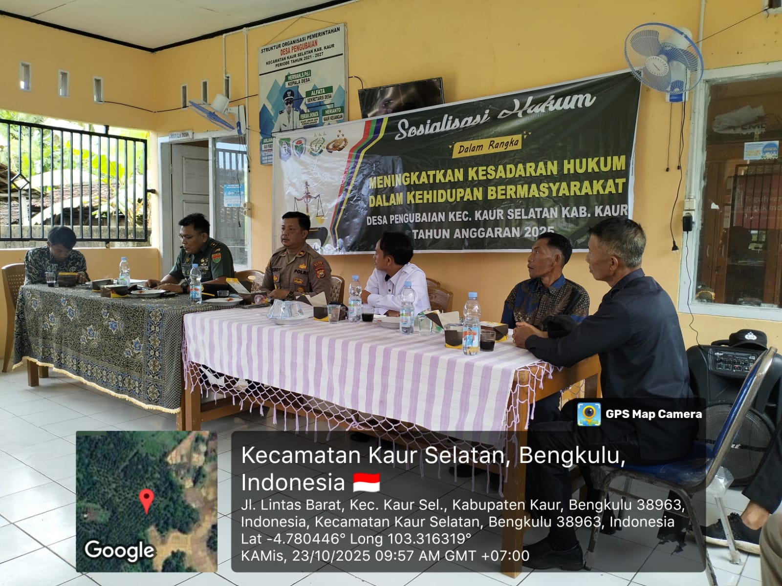 Pelaksanaan sosialisasi hukum Pemdes Pengubaian bersama PLH Danramil 408-04/Ks, Kapolsek Kaur Selatan dan Kajari Kaur. (23/10/2025).