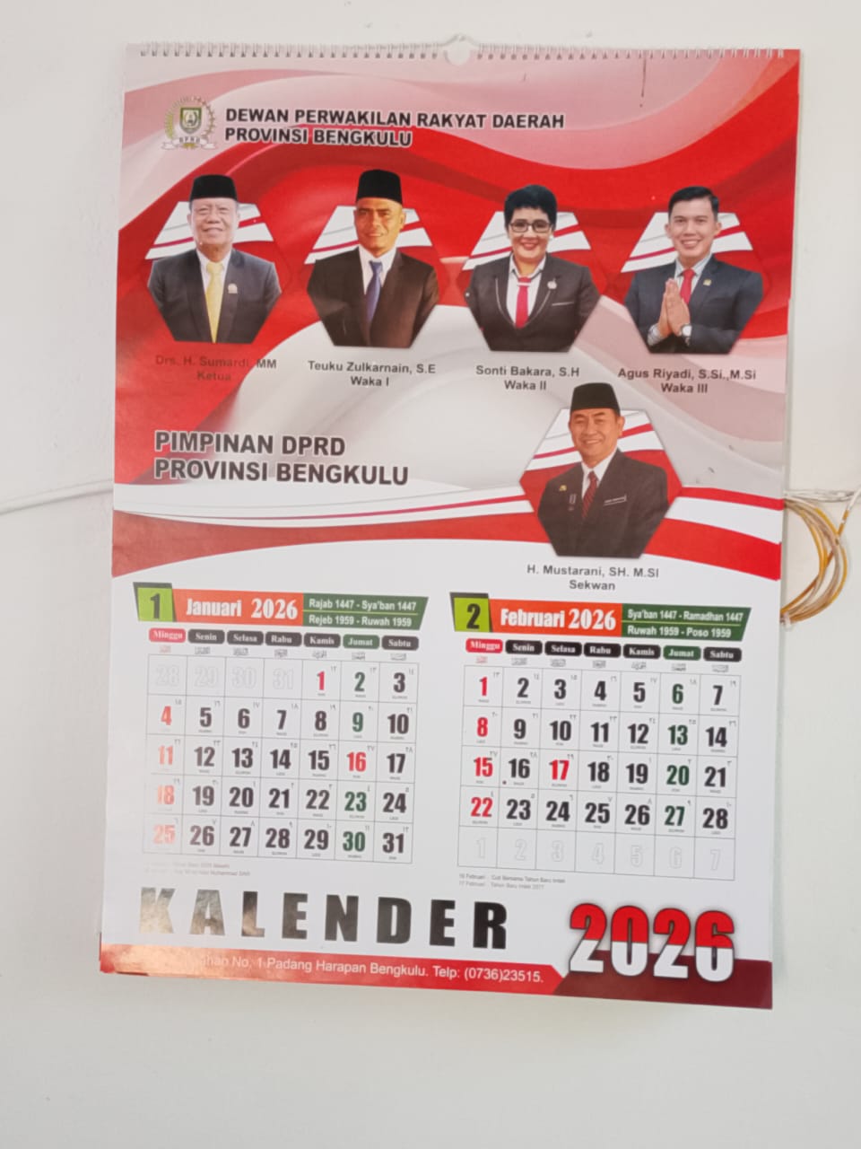 Proyek ini telah rampung. Kalender sudah dicetak dan dibagikan ke seluruh anggota DPRD serta lingkungan sekretariat. Informasi ini dibenarkan langsung oleh Sekretaris DPRD Provinsi Bengkulu, Mustarani Abidin.