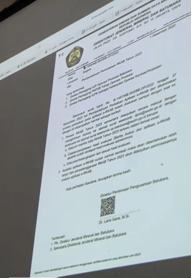 Di persidangan terungkap, arahan untuk mengajukan kembali RKAB secara manual disebut berasal dari pejabat pembina usaha di tingkat direktorat. Fakta itu diperkuat dengan bukti percakapan WhatsApp yang ditampilkan penasihat hukum terdakwa Sunindyo Suryo Herdadi. Dalam grup komunikasi internal bertajuk “e-RKAB Sumsel + Bengkulu”, saksi Boni Arifianto menyampaikan pesan yang pada pokoknya meminta perusahaan mengajukan RKAB secara manual atas arahan Lana Saria.