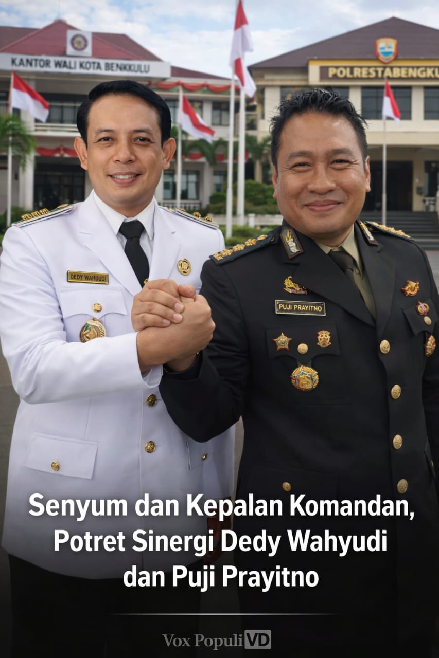TNews, KOTA BENGKULU – Wali Kota Bengkulu, Dedy Wahyudi, menyampaikan apresiasi dan penghormatan tinggi kepada Kombes Pol Puji yang dinilainya sebagai sosok polisi humanis, rendah hati, dan layak menjadi teladan bagi aparat penegak hukum maupun masyarakat luas.